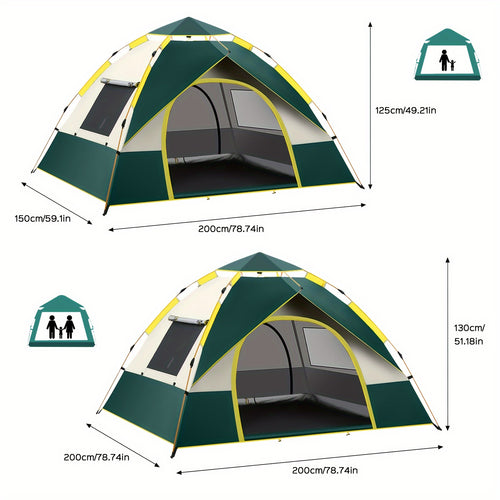 4-Person Automatic Pop-Up Tent, Light Brown, Square, Zipper Closure, Oxford Cloth, Glass Fiber Frame, Portable For Camping, Fishing, Hiking, Mountaineering, Hunting -
